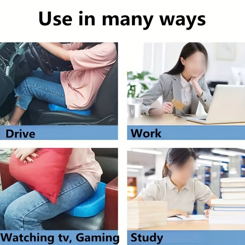VERSATILE AND PRACTICAL -- This gel seat cushion is perfect for any environment where extra comfort is needed, such as offices, homes, cars, and wheelchairs. Therefore, it is a perfect office gift for workers who sit for long periods of time, seniors, students, wheelchair users, drivers, or for home use. Provide yourself or your loved ones with the ultimate in sitting comfort and pressure relief with our versatile seat cushion